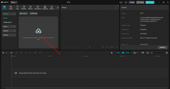 Open CapCut and create a new project. Select the video you want to add a voiceover to and import it into the timeline. You can upload any type of video, whether it’s a tutorial, an advertisement, or an educational video.